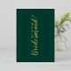 "Will You Be My Bridesmaid?" Modern Script Emerald Green and Gold Foil Card
