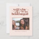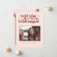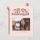 Will You Be My .. bridesmaid, maid of honour, matron of honour or flower girl wedding proposal card that will make your girls smile and leave them with a keepsake that they will enjoy for many years to come! Featuring blush pink background, touches of terra cotta and trendy typefaces. This minimal typography photo card highlights your imagery with fresh, retro typefaces. Cute poem or your choice of personalisation on the reverse side. Fully customisable text, colours and backgrounds. Can be transferred to any product Zazzle carries.