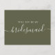 Will you be my bridesmaid. Olive green script Invitation Postcard