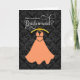 © Socialite Designs. Elegant bridesmaid gown "will you be my bridesmaid" greeting card. Write your own special message in the inside to your bridesmaid. The background has an elegant damask print in black and grey.