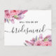 Will you be my bridesmaid. Pink boho floral script Invitation Postcard