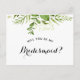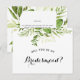 Ask your friends and family to be a part of your wedding with this floral "Will You Be My Bridesmaid" card featuring botanical green elements with feminine calligraphy script. Matching items are available. Bridal Party Proposal card