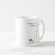 A sweet sentimental coffee mug asking someone to be your bridesmaid for your wedding. This mug is decorated with simple elegant line art illustrating a maid of honor, wedding dress, bouquet of flowers and high heels in line art. Inside is a cute witty funny quote.