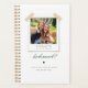 This modern "Will You Be My Bridesmaid?" custom planner features a minimalist design with elegant black-and-white calligraphy, perfect for a stylish bridesmaid proposal. Its simple script and Polaroid photo option make it a personalised, thoughtful gift for her, blending elegance and practicality. This planner is the ideal way to ask your bridesmaid in a chic and functional way, offering a keepsake she'll treasure.