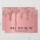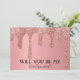 Will you be my Bridesmaid? Bridal shower. Rose pink, glitter drips, sparkle, whimsical, elegant, modern, script, Wedding save the date invitations. Please personalise it with your details.
