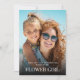 If you love classic, this simple design is right for you. This card features an elegant design, with a white background with room for a personalised photo. The classic black and white font under the image is modern and simple. A perfect addition to your flower girl gifts!