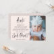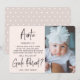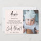 Modern photo guide parent proposal card. Design features single photo of the baby on a bright rose gold background, typography script ''aunt'' and guide parent in trendy calligraphy lettering. Personalise further with names and message.