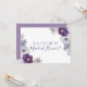 This maid of honour card has light and dark purple watercolor flowers, leaves and silver floral elements. The copy is fully editable. You can also change the font. This card has matching invitations, envelopes, labels and stamps. Make all your wedding items coordinate!
