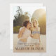 Elegantly ask your closest friends to join your wedding party with a beautifully designed maid of honour invitation card. The card features a large, full-cover photo that captures a special memory or a moment of joy, enhanced by a light beige gradient at the bottom. This gradient provides the perfect backdrop for text, allowing you to add a personalised message or use the provided template phrase to ask your friend to be your maid of honour. This stunning design combines visual beauty with heartfelt sentiment, making each invitation a cherished keepsake.