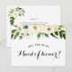 Ask your friends and family to be a part of your wedding with this floral "Will You Be My Maid of honour" card featuring beautiful white floral elements and green foliage with feminine calligraphy script. Matching items are available. Bridal Party Proposal card. Customise with your text.