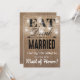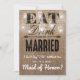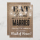 "I can't say "I do" without you!" rustic country maid of honour flat modern card featuring a rustic brown burlap effect background, elegant mason jar string twinkle lights, the words "EAT, DRINK AND BE MARRIED" and your maid of honour wording. These easily customisable wedding cards can be changed to suit your requirements, from adding your own personal message, to changing the font and colour.