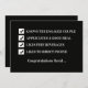 This funny usher card comes in a digital and a printed version. The card features an usher qualification checklist on the front with the words, "Congratulations (Name)" right below. On the back side it is revealed that you have qualified to be an usher. You can add your name at the bottom to make for a funny, yet simple way to ask someone to be your usher. Words and design Copyright Kathy Henis
