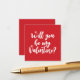 Will you be my Valentine? red custom message Valentine's Day modern script cute greeting card.