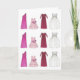 Greeting card features an original marker illustration of a row of pretty bridal party dresses, with WILL YOU JOIN THE PARTY? printed inside in a burgundy font. Perfect for sending bridal party invitations! Coordinating bridal party dress cards available.