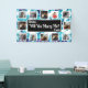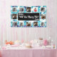 Personalised photos proposal banner. Will you marry me sign. Romantic proposal idea! Blue and white swirl pour painting effect marble. Romantic way to propose on Valentine's Day.