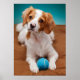 Beautiful Brittany Mix dog holding a tennis ball ...just waiting for you to play!