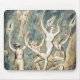 "Comus with His Revellers" is by the English artist, poet and philosopher William Blake (1757-1827). It is a pen and watercolor illustration for John Milton's Comus. This illustration shows Comus, the God of Festivity, holding up the cup of magic while his companions - men and woman with the heads of a bull, a pig, a dog, and a bird - dance with wild abandon. and A women is depicted seated in the foreground against a rock, looking up at the revellers. An angel is looking down from above.