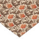 Table runner in a vintage William Morris floral damask pattern of anemone flowers and leaves, digitally enhanced and coloured - deep chocolate brown leaves, and flowers in shades of rust orange and soft gold, on a medium beige background