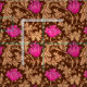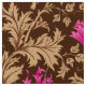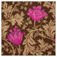Fabric in a vintage William Morris floral damask pattern of anemone flowers and leaves, digitally enhanced and coloured - light coffee brown leaves, and flowers in shades of deep fuchsia and coral pink on a dark chocolate brown background