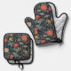 William Morris Blue Teal Arts & Crafts Floral Oven Mitt & Pot Holder Set