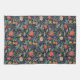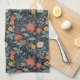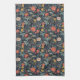 A beautiful, intricate William Morris floral pattern kitchen towel featuring stylized flowers in salmon, teal, yellow, and cream against a deep navy background. Perfect for adding timeless Arts Crafts decor style to any kitchen decor. This classic, rich design is ideal for fans of historic textile prints. Created by Simply Farmhouse Press.