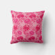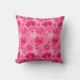 Throw pillow in a vintage William Morris, Art Nouveau, floral print of stylised chrysanthemums, digitally enhanced and coloured, in shades of deep fuchsia pink, azalea pink, and burgundy, on a pale pink background