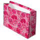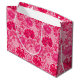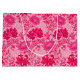 Large gift bag in a vintage William Morris, Art Nouveau, floral print of stylised chrysanthemums, digitally enhanced and coloured, in shades of deep fuchsia pink, azalea pink, and burgundy, on a pale pink background