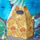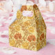 Favour box in a vintage William Morris, Art Nouveau, floral print of stylised chrysanthemums, digitally enhanced and coloured, in shades of mustard gold, caramel brown, and copper, on a cream background