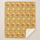 Sherpa Blanket in a vintage William Morris, Art Nouveau, floral print of stylised chrysanthemums, digitally enhanced and coloured, in shades of mustard gold, caramel brown, and copper, on a cream background