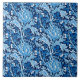 Ceramic tile in a vintage William Morris damask pattern of artichoke plants and leaves, in cadet blue and white, against a dark navy / indigo blue background, digitally enhanced and coloured