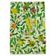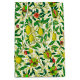 Gift bag in a William Morris Art Nouveau pattern of limes, pomegranates, and peaches, with blossoms, on leafy branches - fruit in lemon yellow and coral orange, with green leaves, against a patterned, yellow and white background