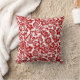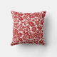 Throw pillow in a vintage William Morris floral damask pattern, digitally enhanced and coloured, in deep Chinese red on a white background