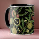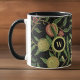 This two-sided coffee mug design is based on the lush William Morris "Fruit" pattern in vintage greens and rusty salmon colours set against a rich black. It also includes an initial monogram on each side of the mug, so make sure to update your initial in the Personalised section. You can also apply the design to multiple styles of mugs as well as a stein or glass.
