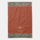 white william morris pattern,oriental red orange floral,persian turquoise teal blue,vintage holland park art,famous british english artist,traditional family surname flowers, "art deco custom monogram", "personalised customised kitchen towel", "personal name art nouveau", "elegant stylish classic dishcloth", "add your own text"