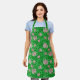 Apron in a William Morris Art Nouveau pattern of honeysuckle flowers against a background of vines and leaves - flowers in shades of ice pink, with emerald green leaves, against a pastel green background