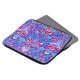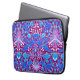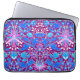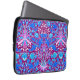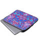 Neoprene sleeve in a vintage William Morris pattern of hyacinths, tulips and leaves, in shades of aqua and cobalt blue, accented with fuchsia and pale pink, on a deep amethyst purple background