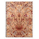 Notebook in a vintage William Morris pattern of hyacinths, tulips and leaves, in shades of deep chocolate brown and cream, accented with rust / terracotta, on a light coffee beige / tan background