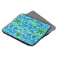 Neoprene sleeve in a vintage William Morris pattern of hyacinths, tulips and leaves, in shades of deep cerulean and cobalt blue, accented with navy, yellow, and lime green, on a pastel sky blue background