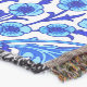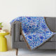 Throw blanket in a vintage William Morris pattern of hyacinths, tulips and leaves, in shades of cobalt and cerulean blue, accented with dark navy, on a white background