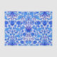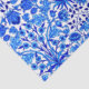 Tissue paper in a vintage William Morris pattern of hyacinths, tulips and leaves, in shades of cobalt and cerulean blue, accented with dark navy, on a white background