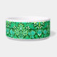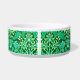 Pet bowl in a vintage William Morris pattern of hyacinths, tulips and leaves, in shades of emerald and jade green, accented with aqua and white, on a deep forest green background