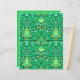 Paper in a vintage William Morris pattern of hyacinths, tulips and leaves, in shades of emerald and jade green, accented with aqua and white, on a deep forest green background