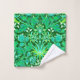 Towel set in a vintage William Morris pattern of hyacinths, tulips and leaves, in shades of emerald and jade green, accented with aqua and white, on a deep forest green background
