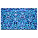 Fabric in a vintage William Morris pattern of hyacinths, tulips and leaves, in shades of cobalt and turquoise blue, accented with white, on a deep navy / indigo blue background