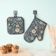 William Morris Inspired Botanical Style Pattern Oven Mitt & Pot Holder Set