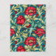William Morris Inspired Red Flowers Pattern Postcard