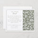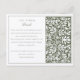 This sophisticated wedding information card is the perfect complement to your invitation suite, adorned with a William Morris inspired design in a classic forest green. The front of the card is beautifully framed with a detailed, botanical illustration, while the back provides ample space to share the finer details of your special day. It's an ideal place to include directions, ceremony specifics, and gift preferences, ensuring your guests are well-informed. The elegant typeface and layout echo the thoughtful attention to detail that your wedding embodies. Direct guests to your wedding website for additional insights, making this card both practical and a keepsake of your beautiful event.