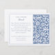 This elegant wedding information card showcases a beautiful William Morris-inspired floral border in classic navy blue and soft white. Designed to help you share important wedding details with your guests, this card blends vintage charm with modern elegance. The intricate botanical artwork along the side complements the minimalist text layout, providing plenty of space to include helpful information like directions, venue specifics, and gift preferences. Ideal for couples looking to add a touch of timeless sophistication to their wedding stationery suite, this card is both functional and exquisitely stylish.