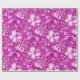 Wrapping paper in a vintage William Morris floral print of stylised lilies and Irises, digitally enhanced and coloured, in shades of soft amethyst purple, plum, lilac and white on a deep amethyst purple background