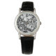 Watch in a vintage William Morris floral print of stylised lilies and Irises, digitally enhanced and coloured, in shades of grey / grey and white on a black background